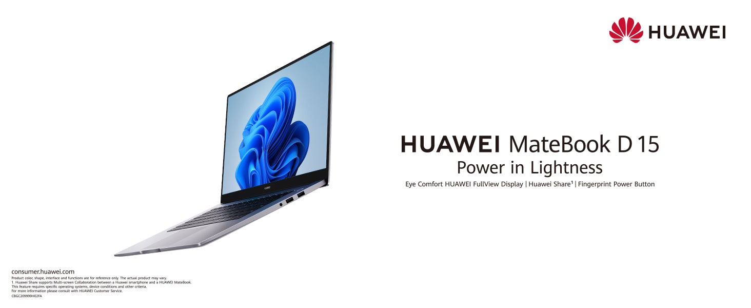 Thin & Portable Design: Weighing just 1.56 kg and featuring a thin profile, the MateBook D15 is easy to carry anywhere.